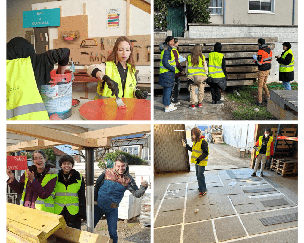 Accompagné·e·s par l’équipe jeunesse de la ville de Feyzin, trente jeunes ont imaginé à quoi pourrait ressembler un espace qui leur serait entièrement dédié. Après trois weekends de travail collectif passionné, le projet d’un tiers lieu est né. Il devait être à la fois convivial et solidaire, un endroit entre la maison et le travail, ou l’école, un espace « où on entre gamin et dont on ressort plus mature » (extrait d’un témoignage d’un jeune fondateur du projet).